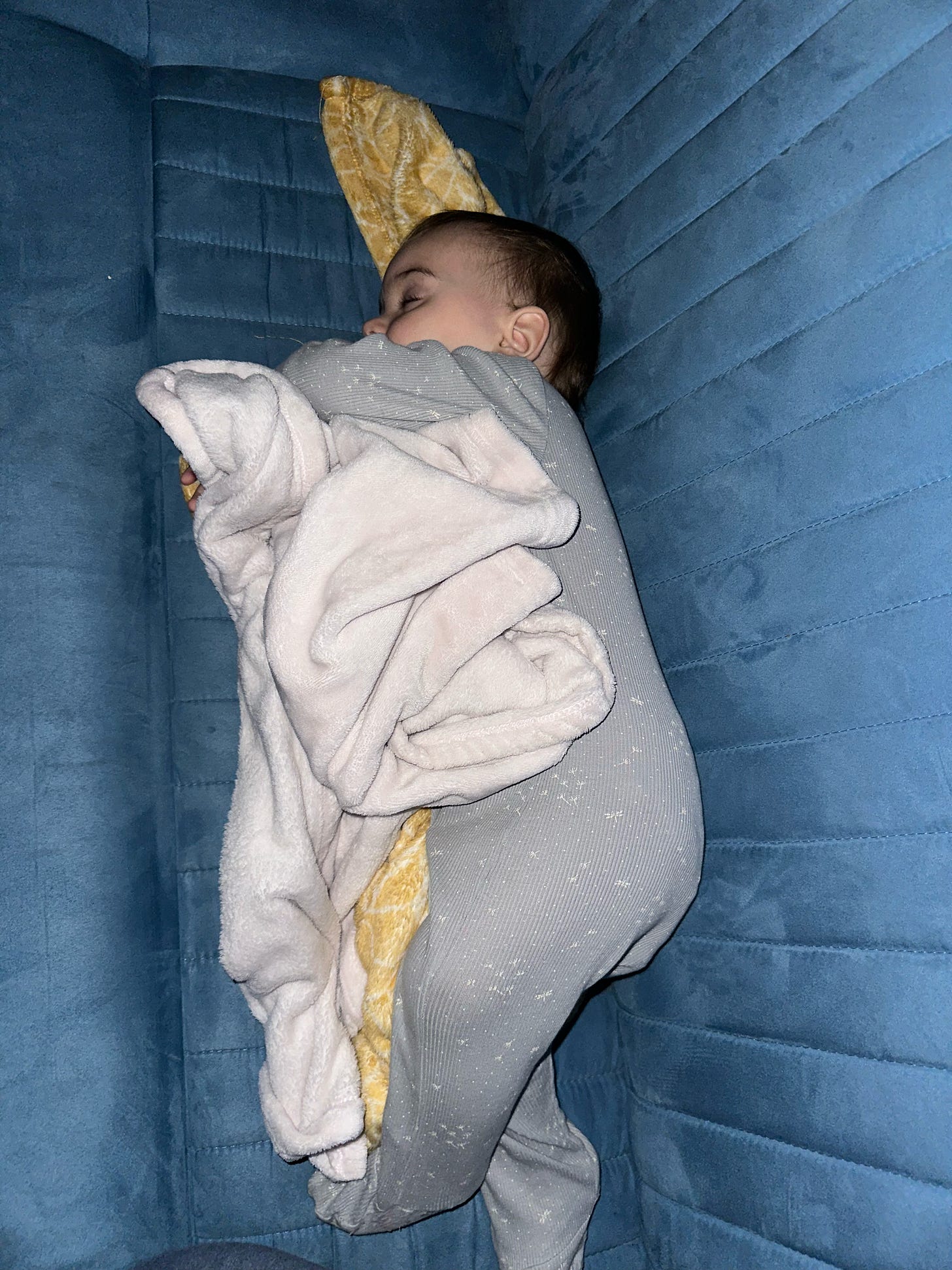 Especially to this baby, seen here spending the night in a bomb shelter in Kyiv.