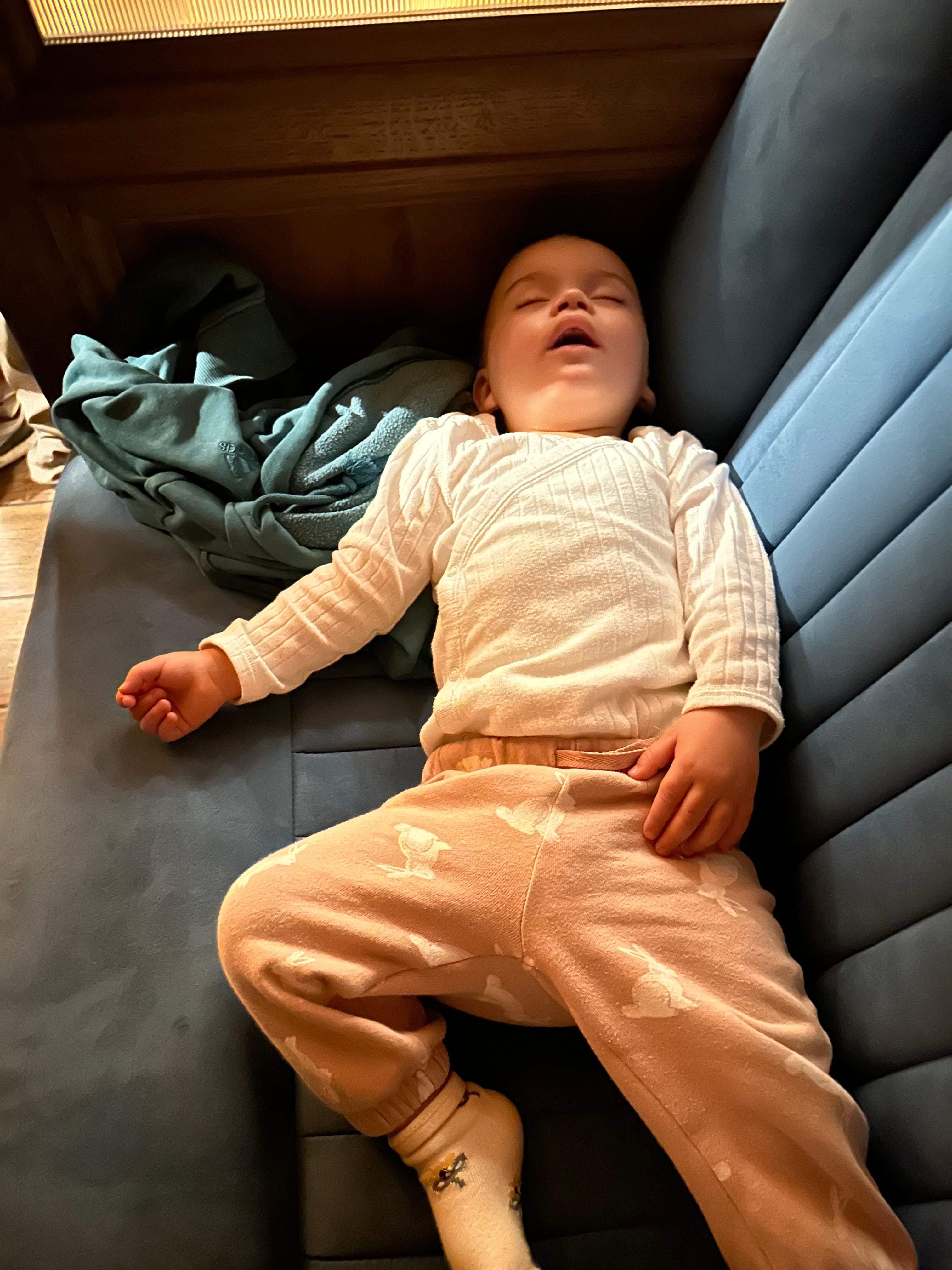 This baby also spent the night in her rather swanker bomb shelter:
