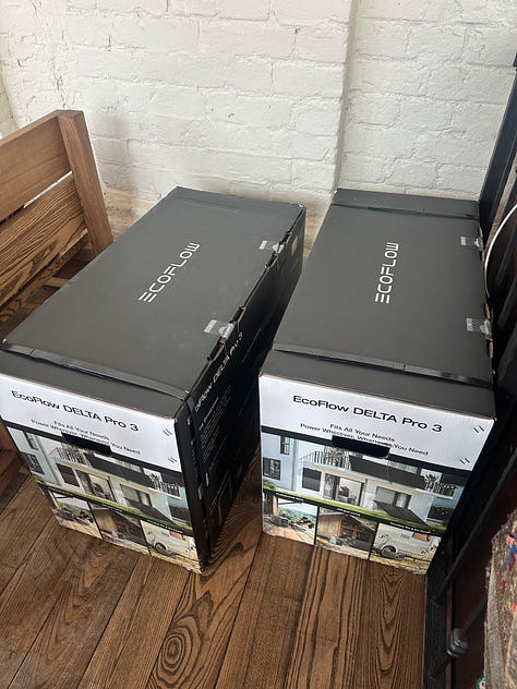 The batteries cost about $3,500 per unit. They are particularly expensive because lower-cost ones tend to be sold out these days, and because Nastya and I decided that given the extent to which people are relying on these for heat, not merely back-up electrical power, it makes sense to get higher-end units.
