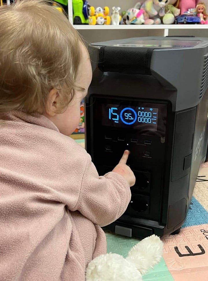 In case what’s missing from your life is pictures of Ukrainian babies hanging out with large Ecoflow batteries.