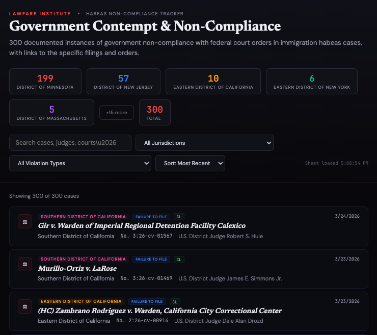 Three Hundred Habeas Cases in Which the Government Has Defied Court Orders