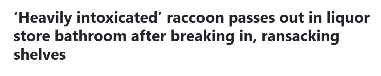 Today’s #BeastOfTheDay is—once again—the raccoon. Yes, I know the raccoon was the BotD less than a week ago, but this truly glorious headline came to my attention today: