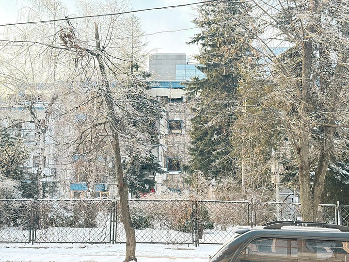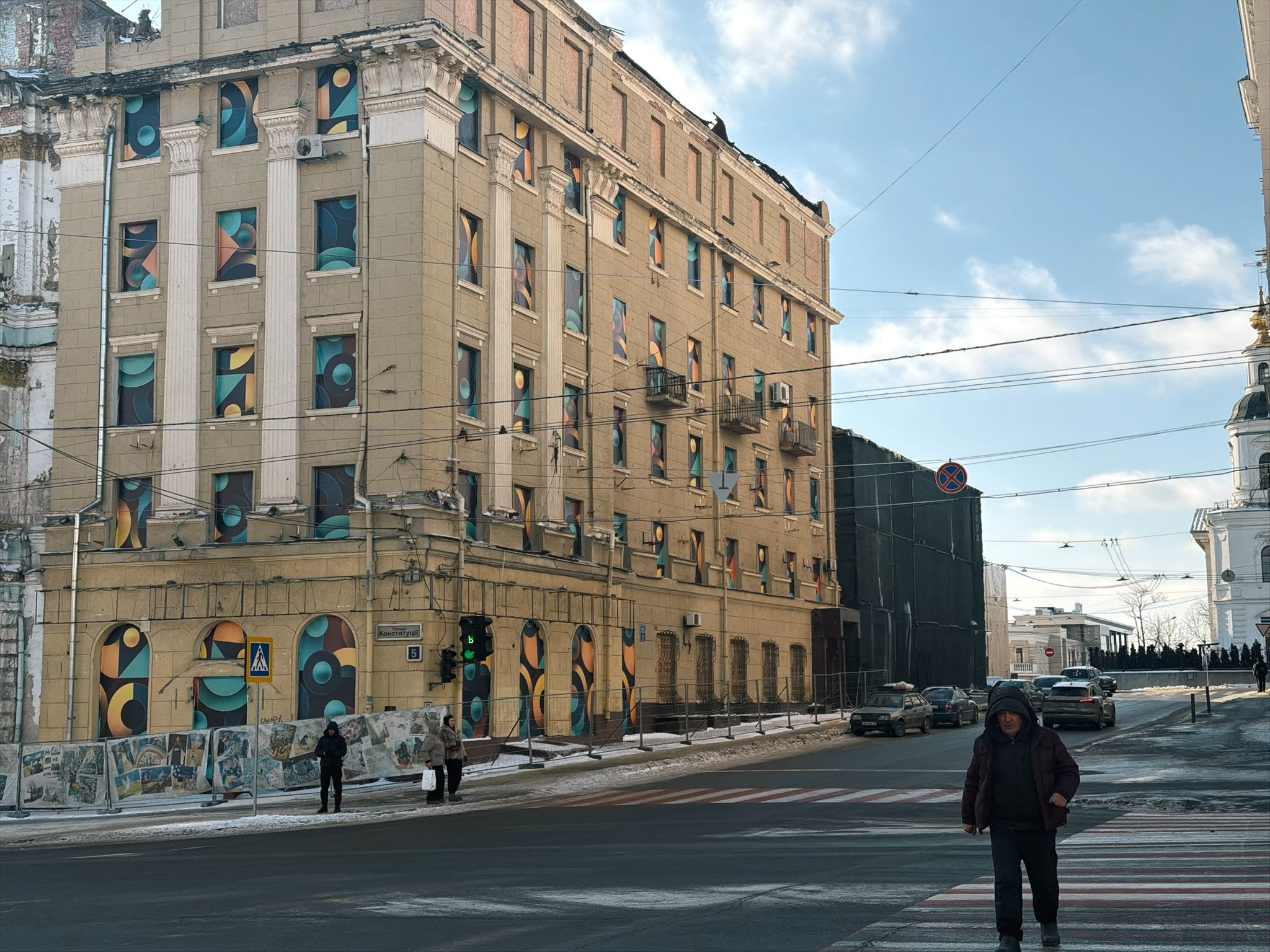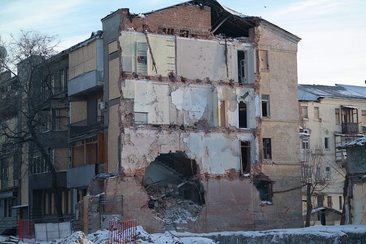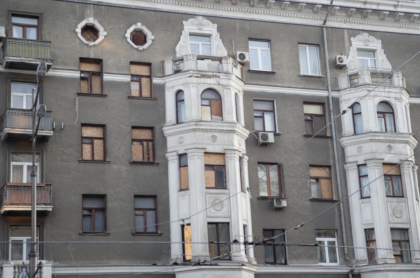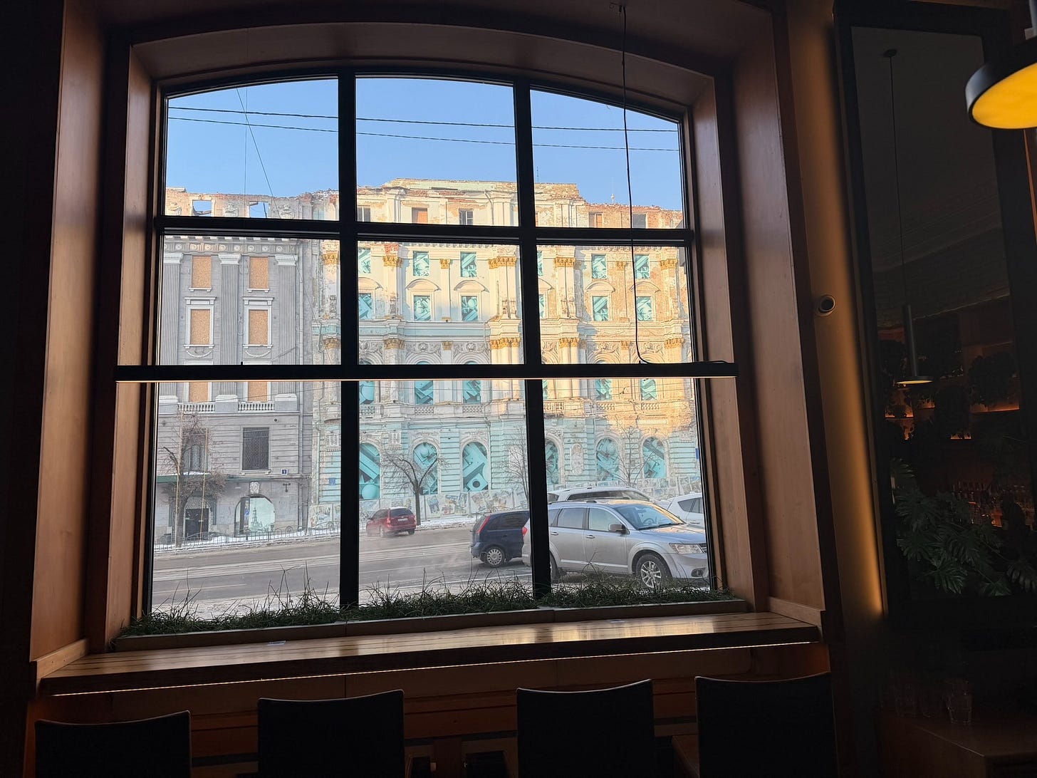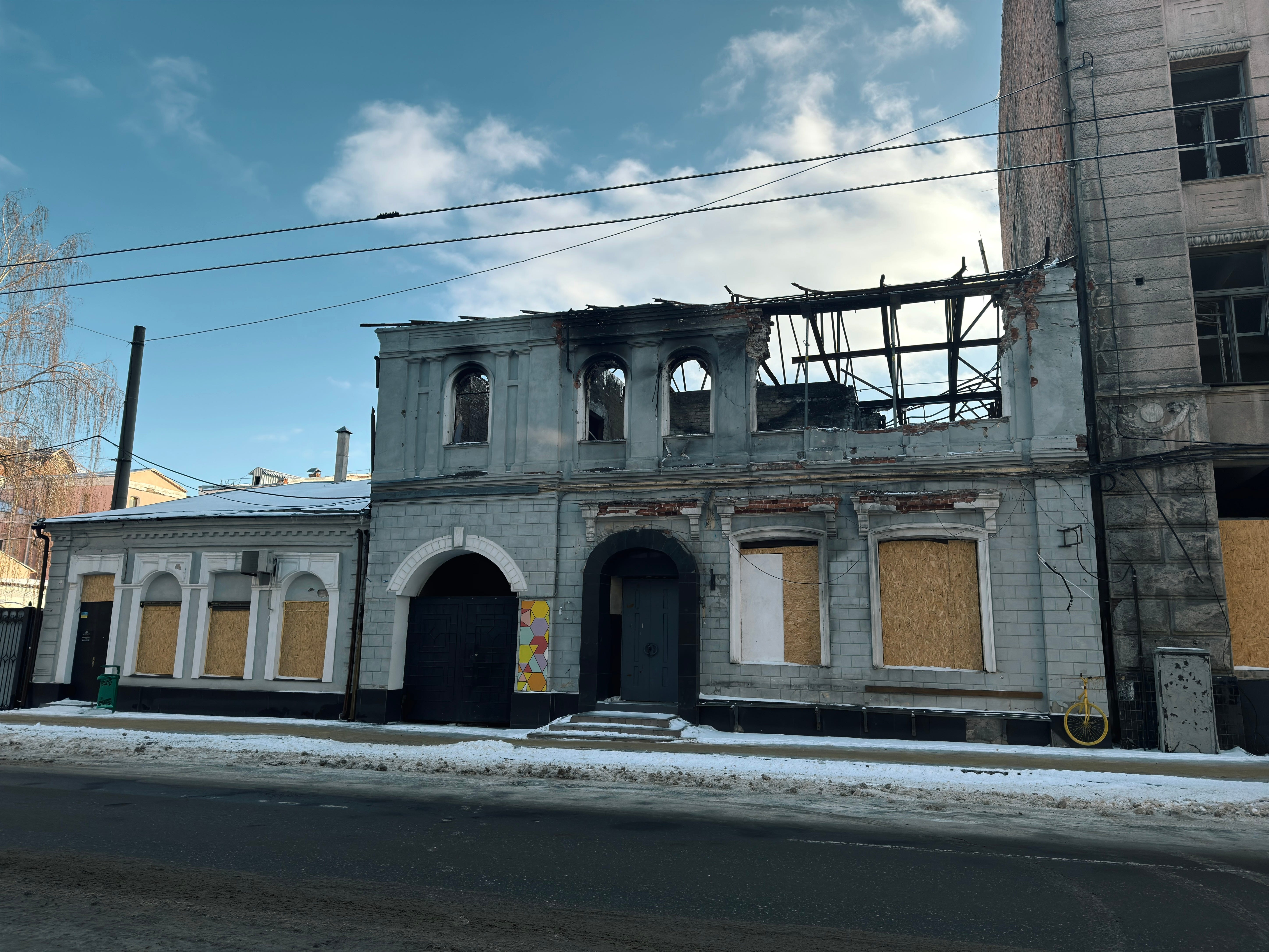 Indeed, Kharkiv is unlike Kyiv in that the percentage of downtown buildings that have some degree of damage can really overwhelm you. In Kyiv, the power situation and the heating situation are genuine disasters, and air attacks are a nightly affair; and there is no shortage of buildings that have been hit with drones or ballistic missiles. I don’t mean to dismiss the situation in Kyiv.