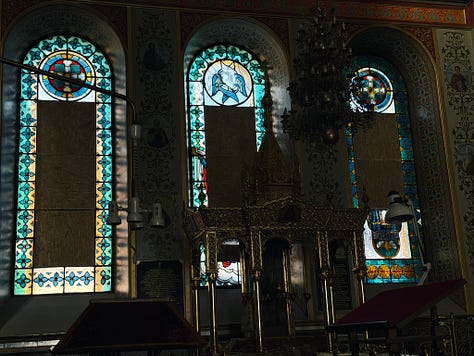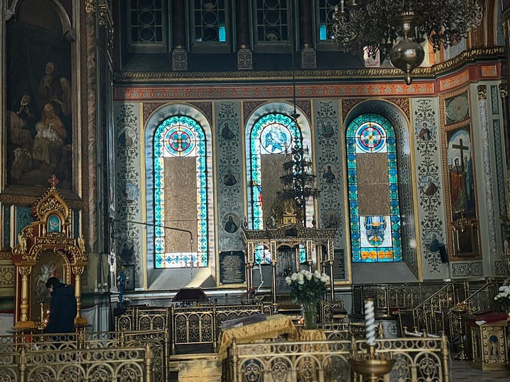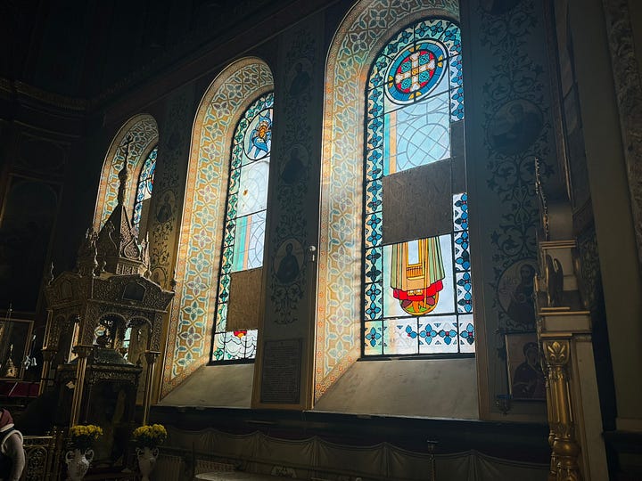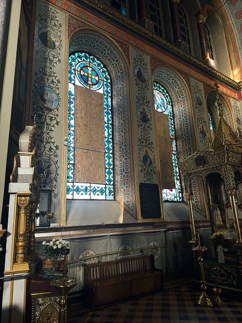 Even buildings that look unscathed have scars. From the outside, the Annunciation Cathedral looks pretty great: