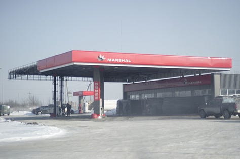 The visuals associated with such destruction can depict compound disasters. Here, for example, are people gathering in front of one of the buildings featured earlier on a frigid morning at 7:00 am (and when I say frigid I mean below zero degrees Fahrenheit, which is around -20 degrees Celsius) from a water truck. They are here because they have no running water at home. Jimmy and I ran into this scene while waiting outside 1654 for it to open so we could have breakfast:
