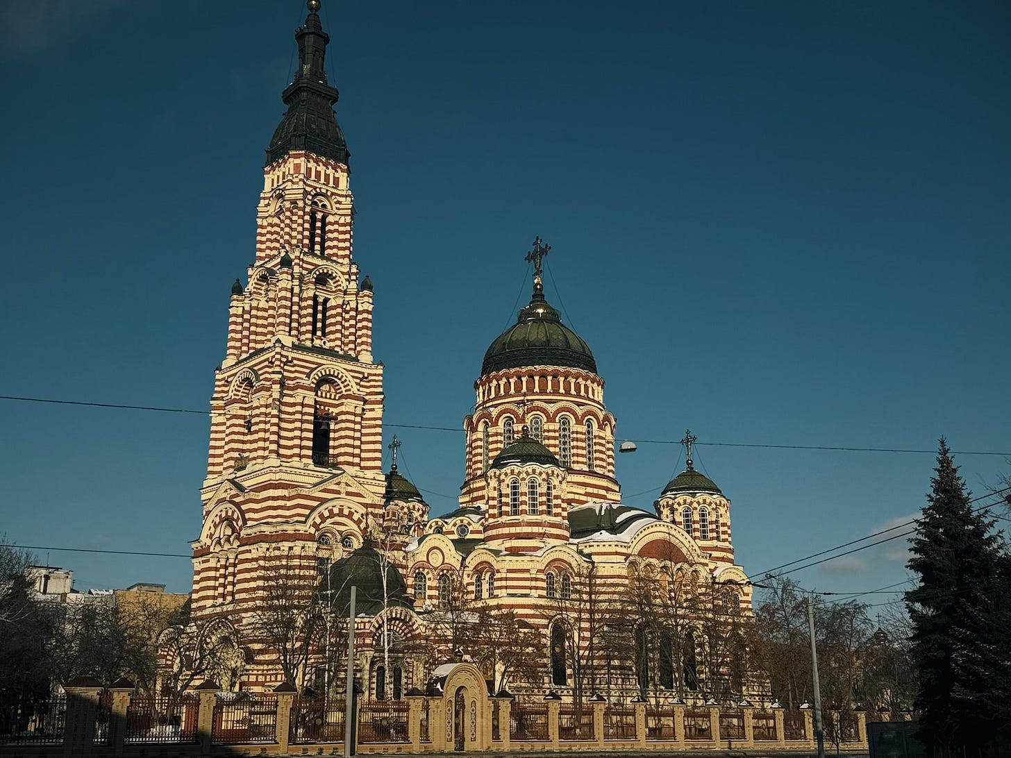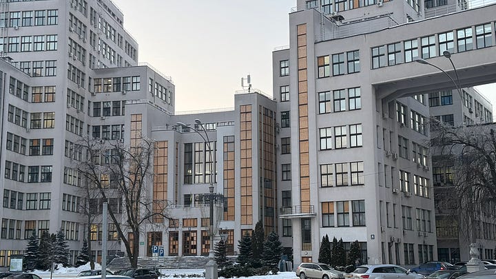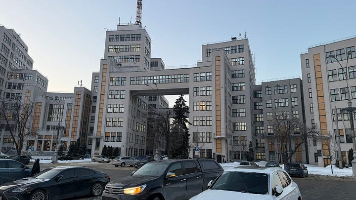 The first thing to understand about Kharkiv is just now wrong this reputation is. Kharkiv is architecturally fascinating. There are mesmerizing examples of both tsarist-era and Soviet architecture—from all periods of the Soviet Union—densely packed in a city center that is just endlessly interesting. This is not Odesa, a city built around palaces and theaters and grand staircases. Think instead about some hybrid child of a 19th Century European city that mated with a textbook on Soviet architectural history and had cool post-Soviet redesign and modernization of countless buildings—all with old trolleys running through the streets. It would be a fabulous walking city—especially because of the quality of Ukrainian cafe culture—except for the bombing.