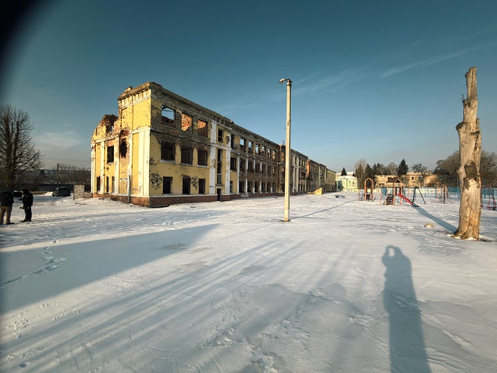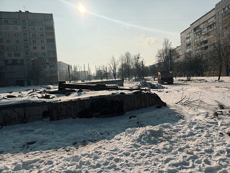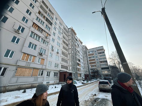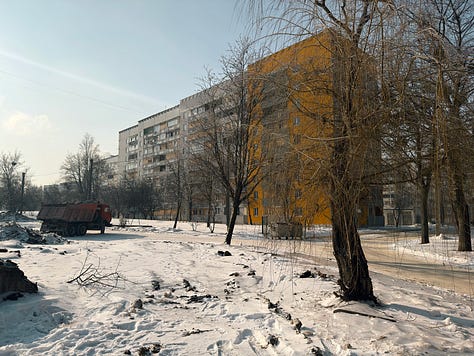 I was also chaperoned while taking the pictures that follow by military folks who know what they are doing and, throughout my trip to Kharkiv, by the most estimable Jimmy Rushton—a British freelance journalist and analyst who has lived in Ukraine since 2022 and whom you should follow)—who knows the city extremely well and knows what one can and cannot do safely. Here is my conversation with Jimmy from the other day on his work in Ukraine: