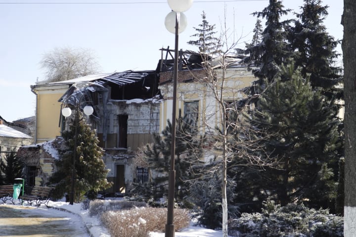 The number of downtown buildings in Kharkiv that have sustained damage is hard to overstate. The damage is on a spectrum—from a few windows being blown out by blasts nearby to total destruction and everything in between.
