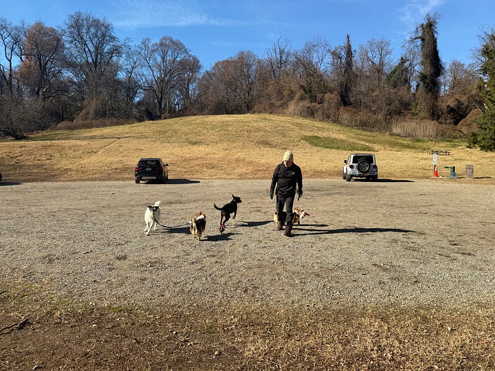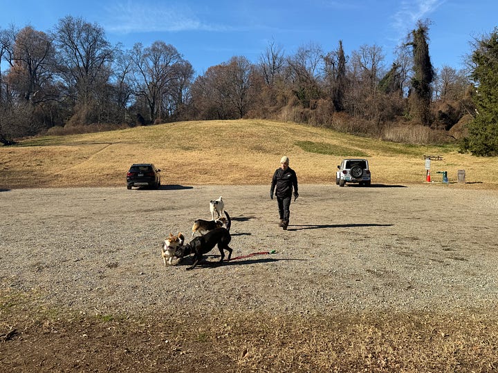 I was at the park yesterday with my two dogs and a car drove up. It had Maryland license plates and an anti-Trump bumper sticker, and two corgis leapt out and immediately began playing joyfully with my two dogs. The driver of the car also got out. He didn’t immediately recognize me at the distance, as was out of context and behind dark glasses in the sun.