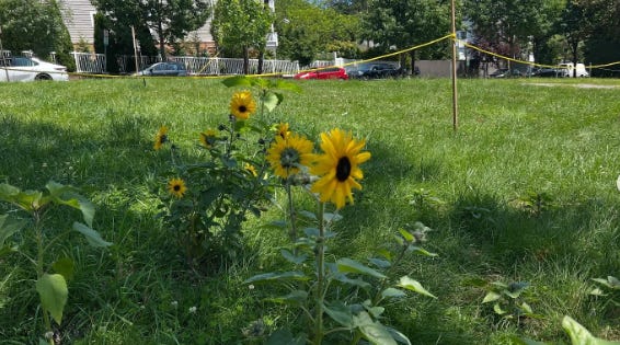The sunflowers we planted across the street from the Russian embassy are starting to come in.