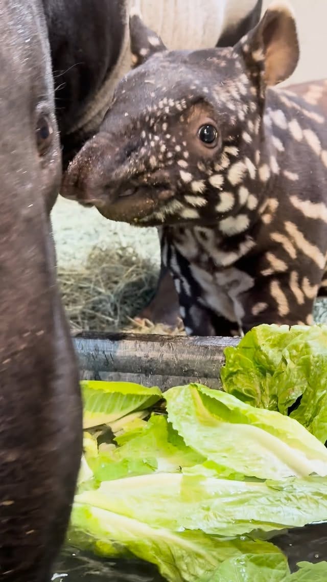 Today’s #BeastOfTheDay is the baby tapir, seen here having a salad-bath: