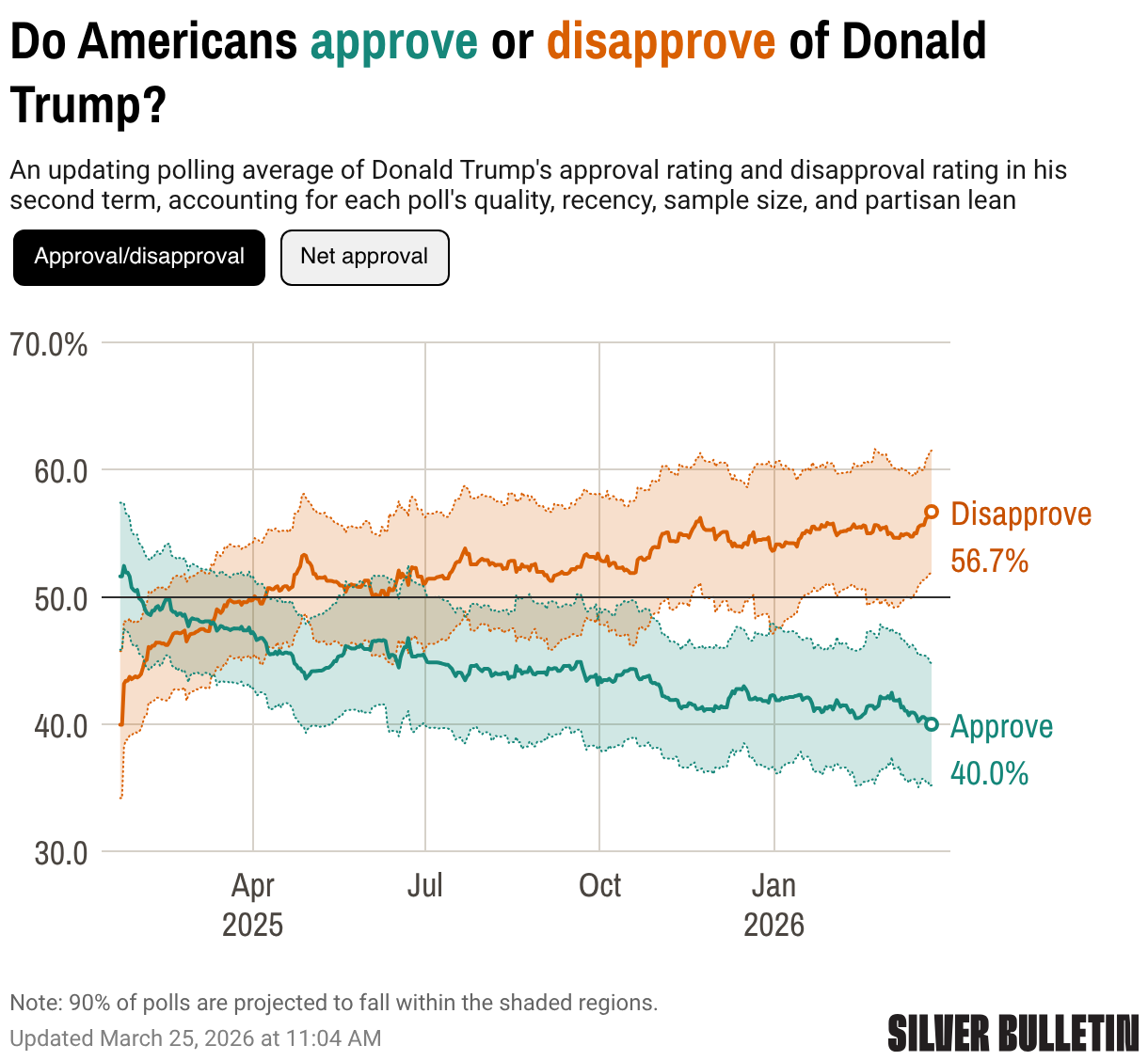 I believe this is the lowest Trump’s approval has ever been in the second term in the Nate Silver average.