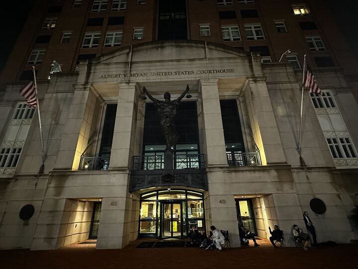 The Line outside of the U.S. District Court in Alexandria for press seats at the James Comey arraignment.
