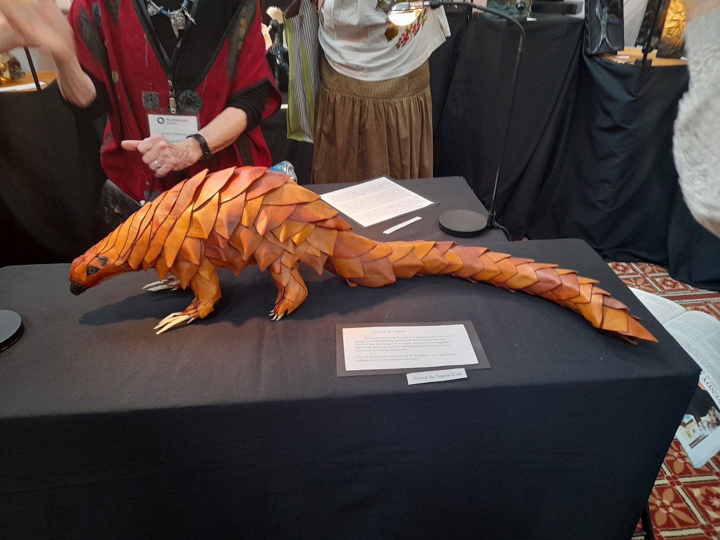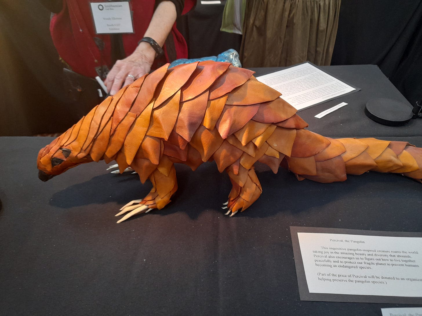 Today’s #BeastOfTheDay is the pangolin, which I—EJ Wittes—encountered as a leather sculpture this weekend at the Smithsonian Craft Show: