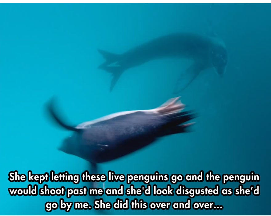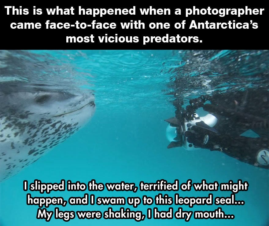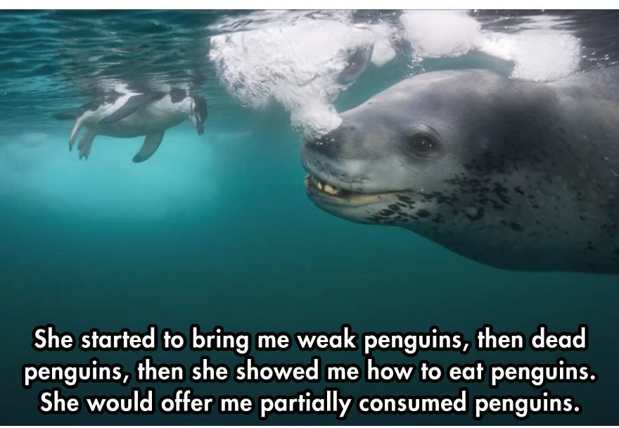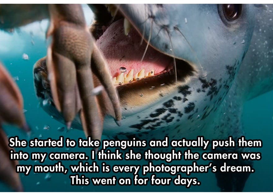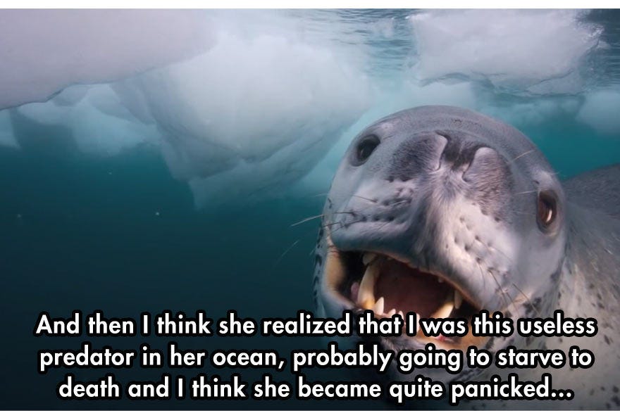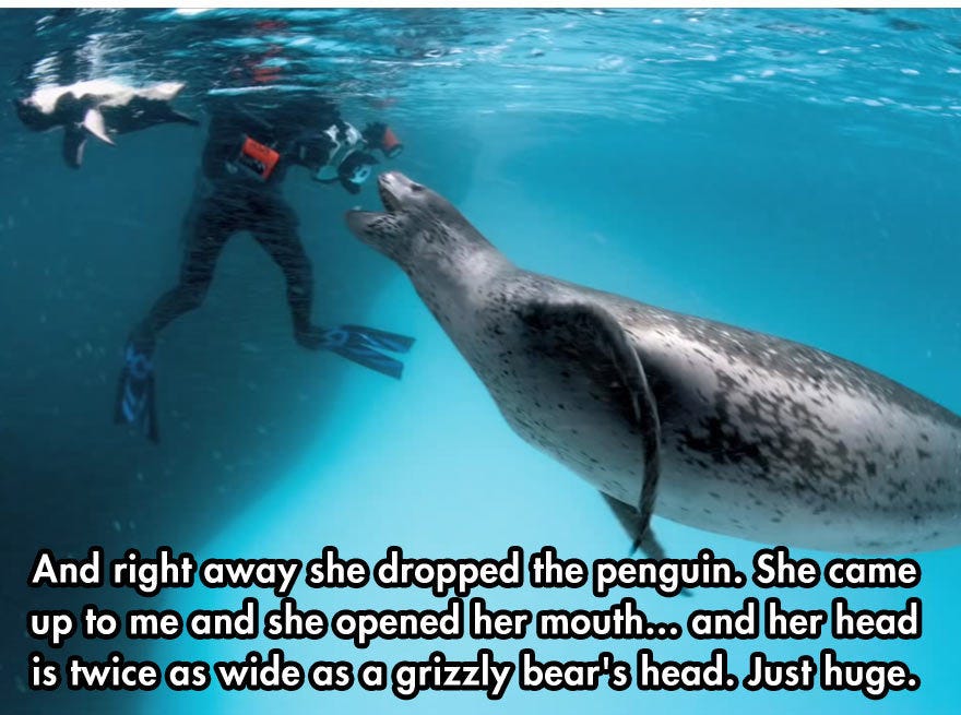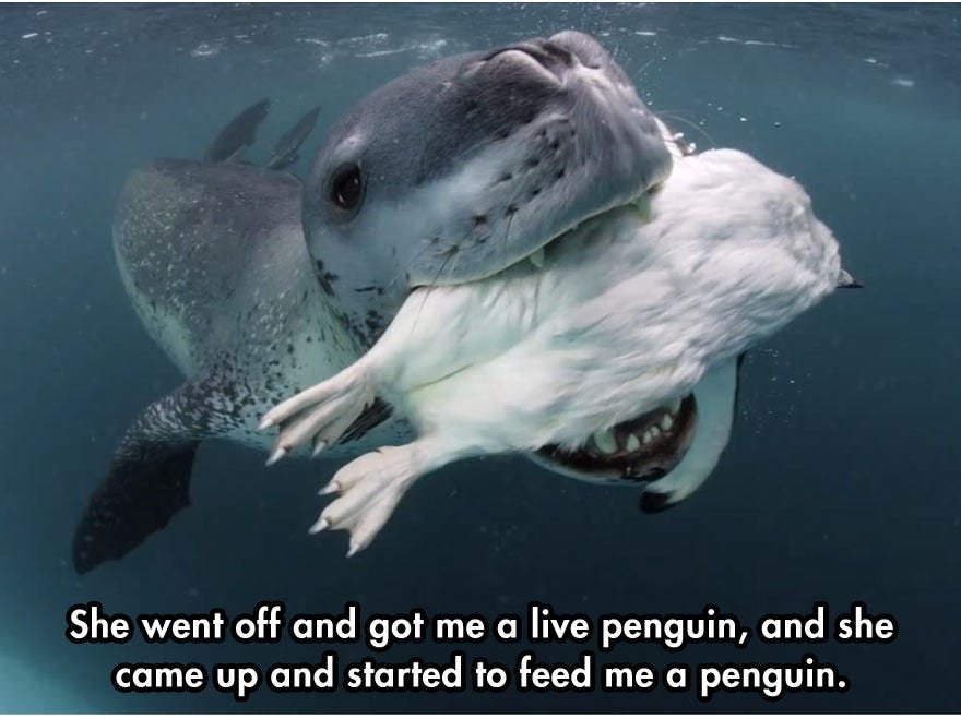 Today’s #BeastOfTheDay is the leopard seal, seen here trying to teach a useless photographer how to feed himself: