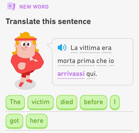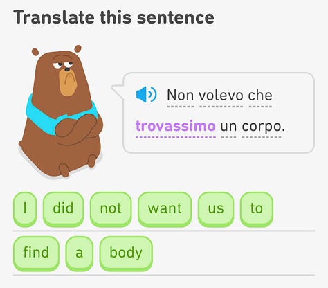 Duolingo Italian continues to be morbid.